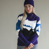 Combining softly blended cashmere and merino yarns, timeless personality, and contemporary Wasatch Mountain Range graphic motif, this alpine sportswear garment commands a first-class expression representing the nostalgic mining town roots and ski fashion culture of Park City Utah USA.